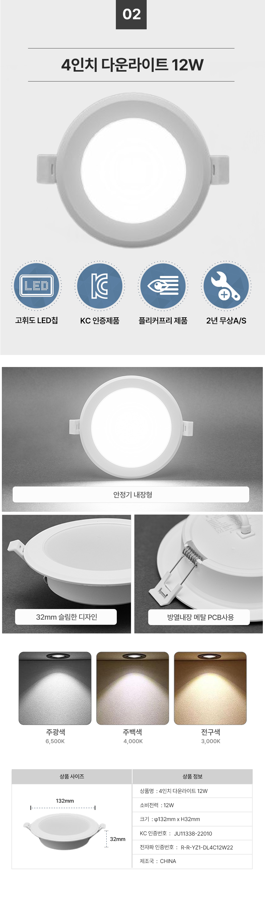 4인치 다운라이트 12W